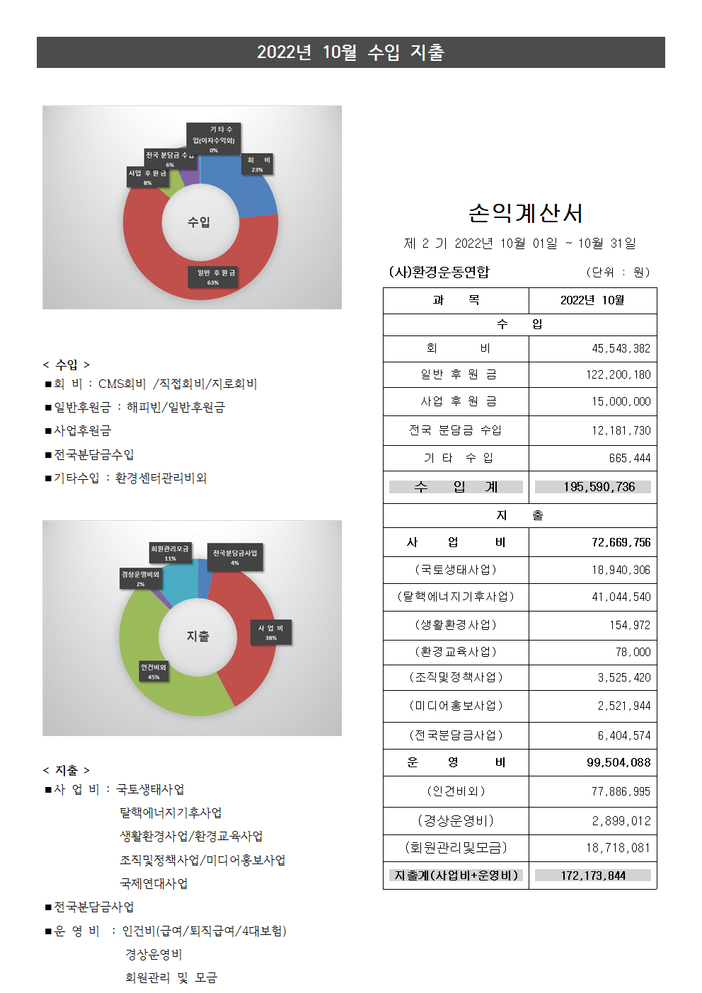 월별 재정보고2022년 10월 재정보고 (사)환경운동연합