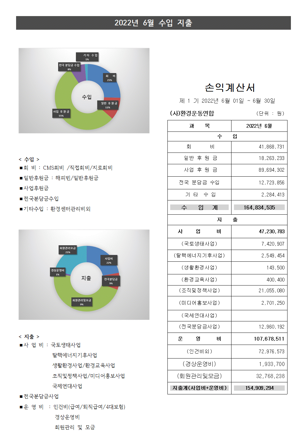 월별 재정보고2022년 6월 재정보고 – (사)환경운동연합