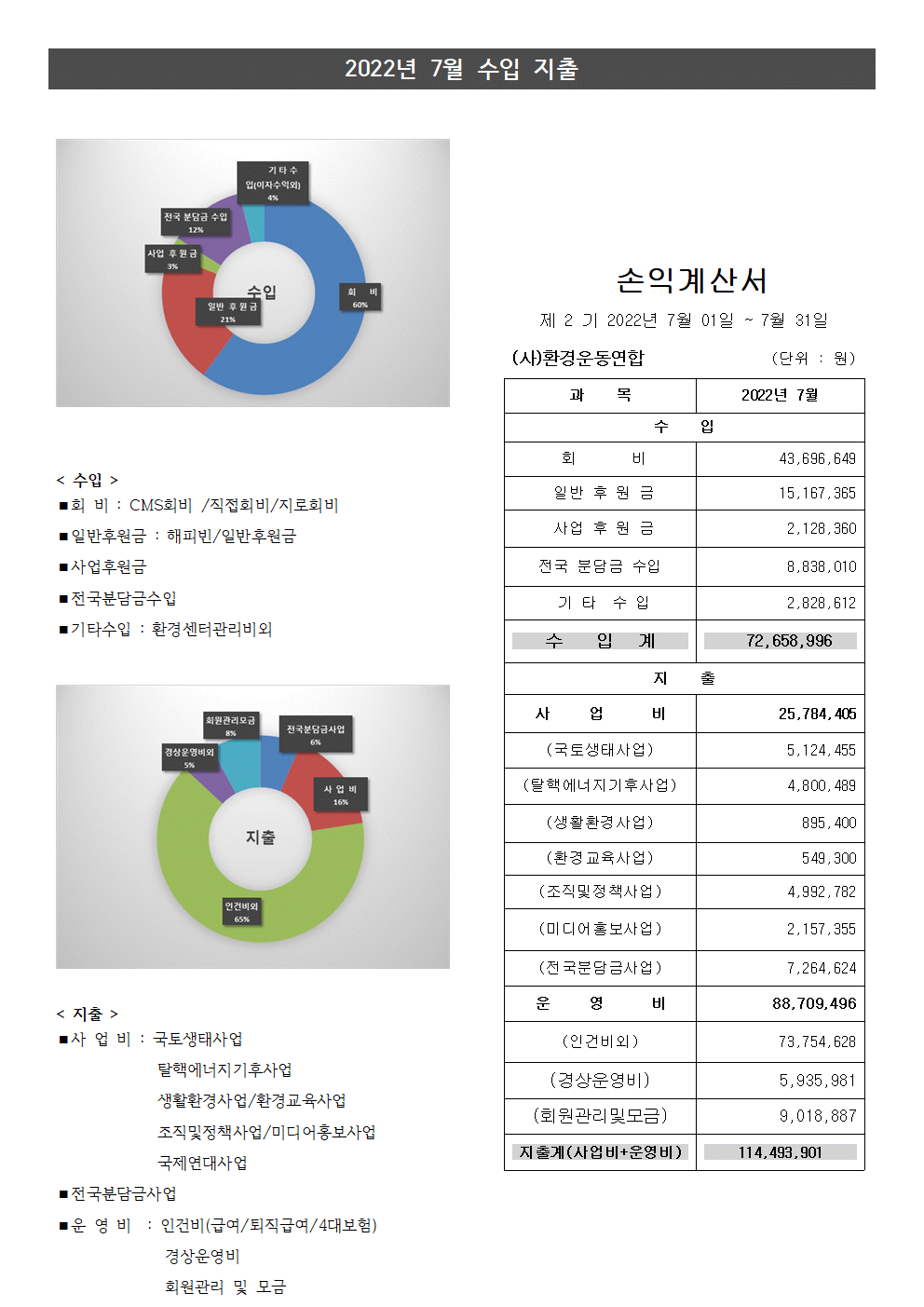 월별 재정보고2022년 7월 재정보고 – (사)환경운동연합