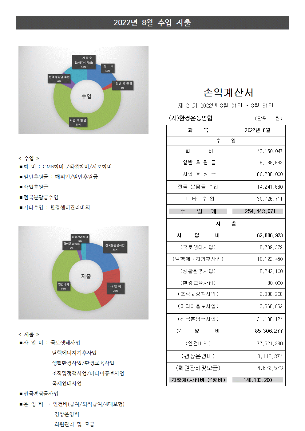 월별 재정보고2022년 8월 재정보고 (사)환경운동연합