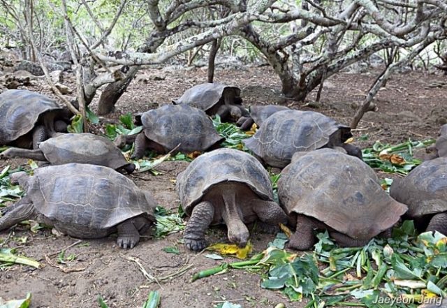 집단생활을 하는 갈라파고스땅거북 ⓒ장재연