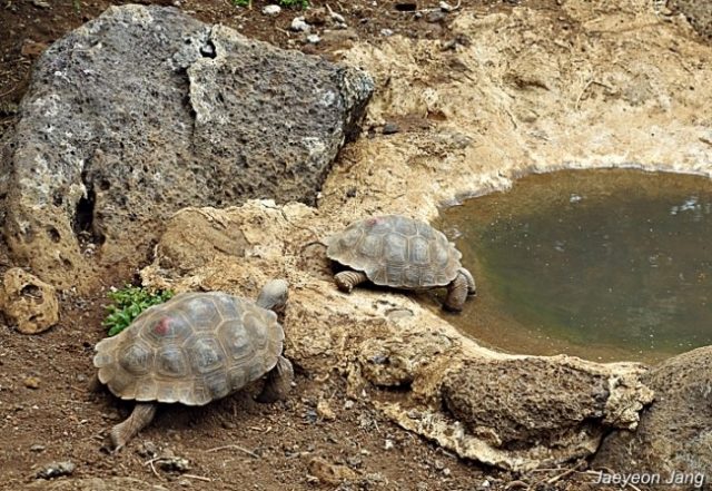 물을 마시고 있는 어린 갈라파고스땅거북 ⓒ장재연