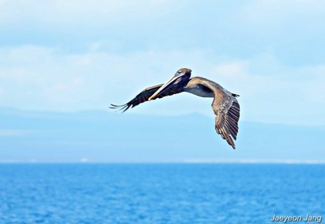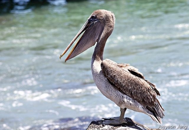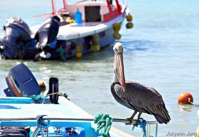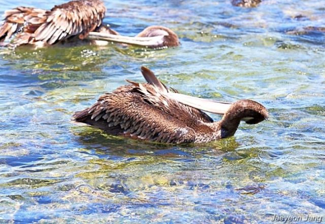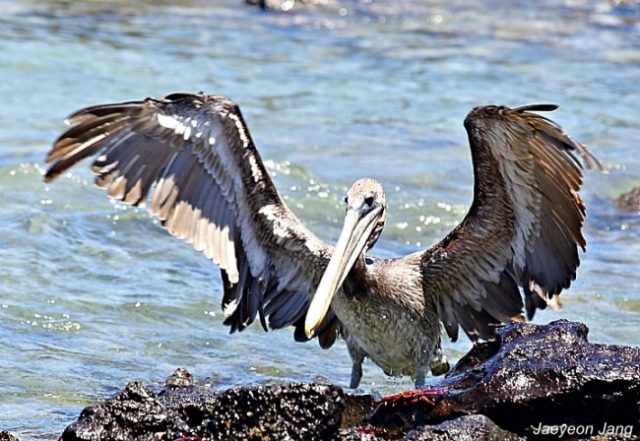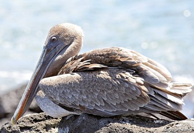갈라파고스에서 가장 눈에 많이 띄는 동물은 바다사자와 이구아나, 그리고 펠리컨이다. 갈라파고스의 펠리컨은 갈색 사다새 (Brown Pelican)다. 처음 펠리컨을 보면 긴 부리 밑의 주머니와 바로 눈앞에서 자세히 볼 수 있다는 것이 신기해서 열심히 사진을 찍게 된다.