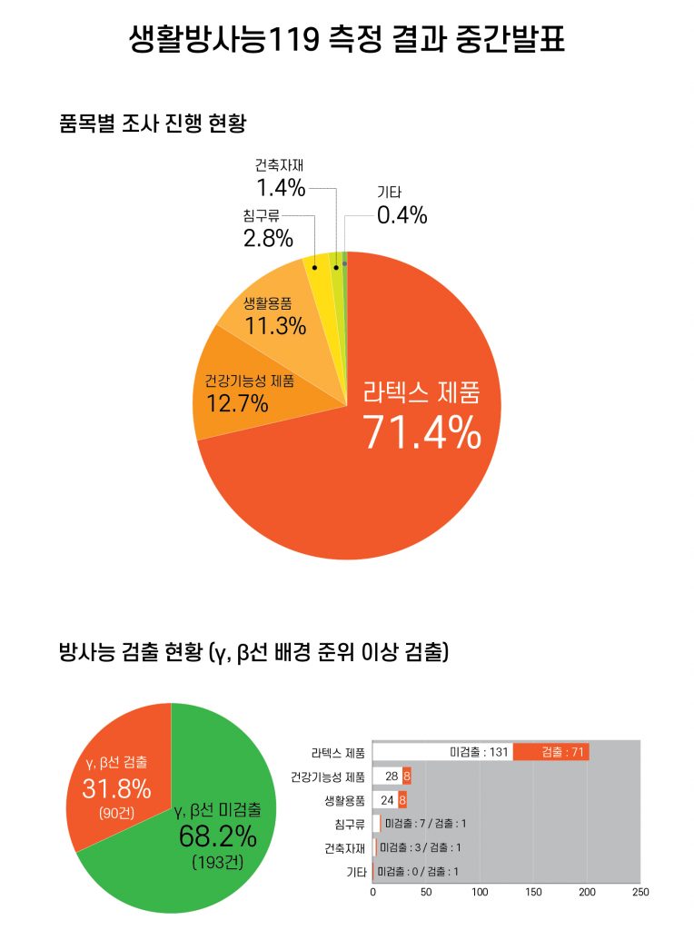 현재까지 중앙사무처에서 운영하는 방사능 측정소로 약 300명이 넘는 시민들이 방사능 의심 제품에 대해 측정을 요청했으며, 신청 수는 계속 증가하는 추세다. 측정 제품은 최근 논란이 된 라텍스 매트리스나 베개 등 침구뿐만 아니라 음이온, 토르마린 건강 제품부터 기능성 속옷, 고양이 배설용 모래, 미용 마스크, 샤워기 등 다양하며, 이러한 제품들이 실제로 방사선이 검출될 가능성이 있어 매우 우려하고 있다.