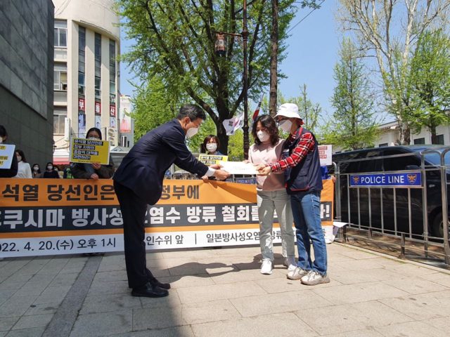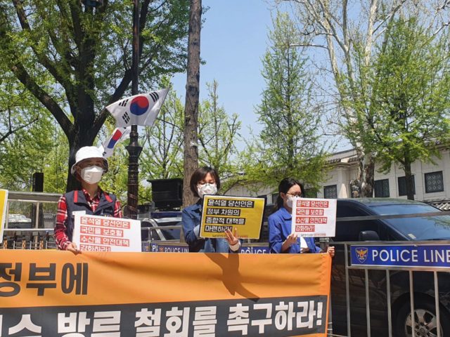 윤석열 정부는 후쿠시마산 수산물 수입에 대한 반대 의사를 분명히 밝혀야 한다. 또한, 윤석열 당선인은 후쿠시마 오염수 해양방류에 대한 공약 실천을 위한 구체적 정책을 마련해야 한다.