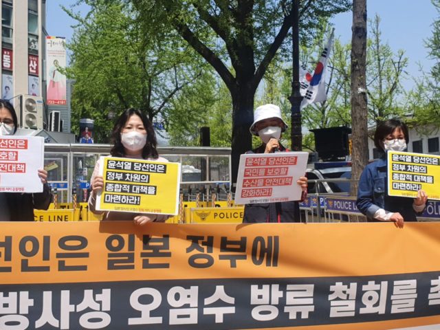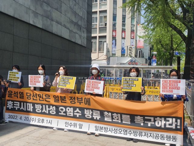윤석열 당선인은 일본 정부에 후쿠시마 방사성 오염수 방류 철회를 촉구하라!