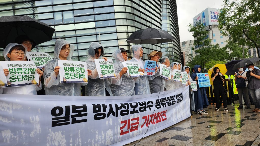 - 8월 23일(수) 11시 30분 ‘일본방사성오염수해양투기저지공동행동(이하 공동행동)’은 일본 정부의 해양투기 일정(8.24) 철회를 요구하고, 더불어 8월 22일(화) 저녁 7시 서울시청 동편에서 열렸던 긴급 촛불 행동에서의 경찰 측 집회 방해를 규탄하는 기자회견을 진행했다.