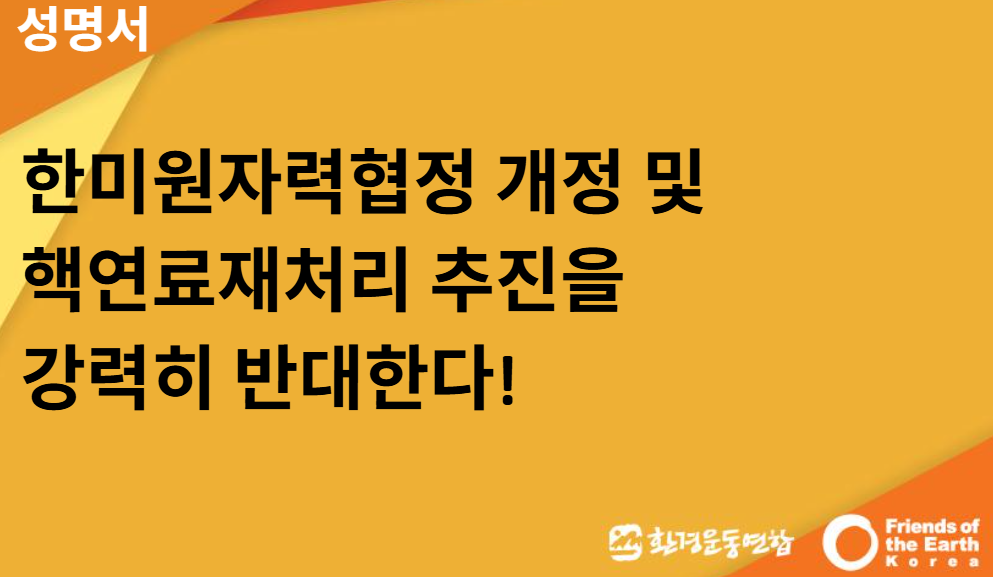 2025년 10월 29일 예정된 한미정상회담에서, 한국 정부와 미국 정부가 ‘한국의 우라늄 농축 및 핵연료 재처리 허용’을 포함한 한미원자력협정 개정 방향성을 정상 합의문에 명시할 것이라는 보도가 나왔다. 이는 1974년 협정 체결 이후 처음으로 핵연료주기 기술을 제도적으로 완화하는 위험한 시도이며, 한반도 비핵화 원칙과 국제 비확산 체제, 그리고 국민의 안전을 심각하게 훼손할 수 있다.