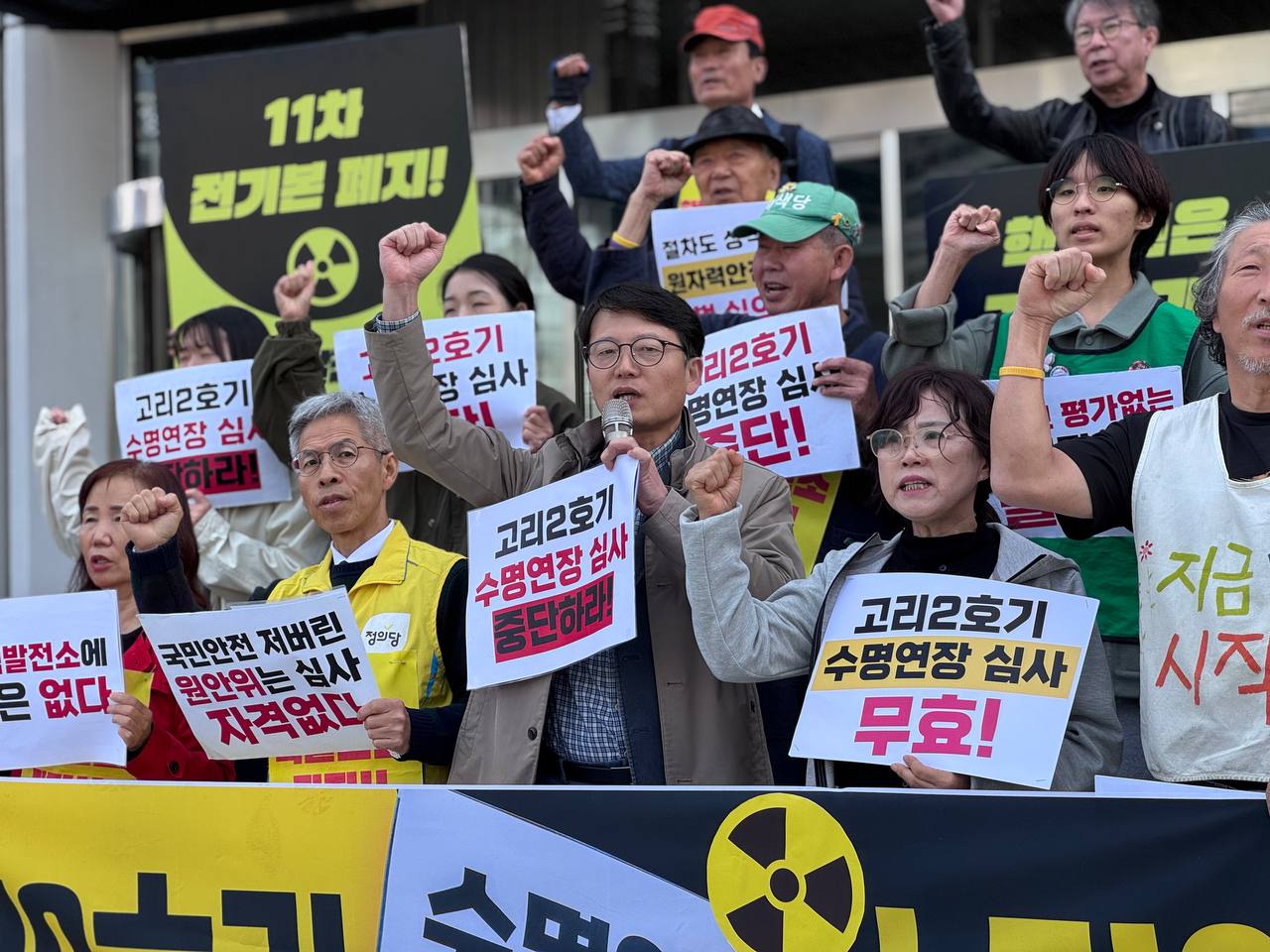 - 성원기 삼척핵발전소반대투쟁위원회 공동대표는 “2017년 문재인 정부가 고리1호기 영구정지 선포식에서 ‘신규 원전 백지화와 수명연장 중단’을 약속했지만, 지금 정부는 그 약속을 뒤집고 있다”고 비판했다. 그는 “고리2호기의 수명연장은 단순한 한 기의 연장이 아니라 향후 10기 노후원전의 수명연장 물꼬를 트는 위험한 출발점”이라고 지적했다. 또 “수명이 끝난 원전을 계속 가동하면 재생에너지 전환은 불가능해지고, 국민의 생명과 안전은 또다시 위험에 놓이게 된다”고 경고했다.