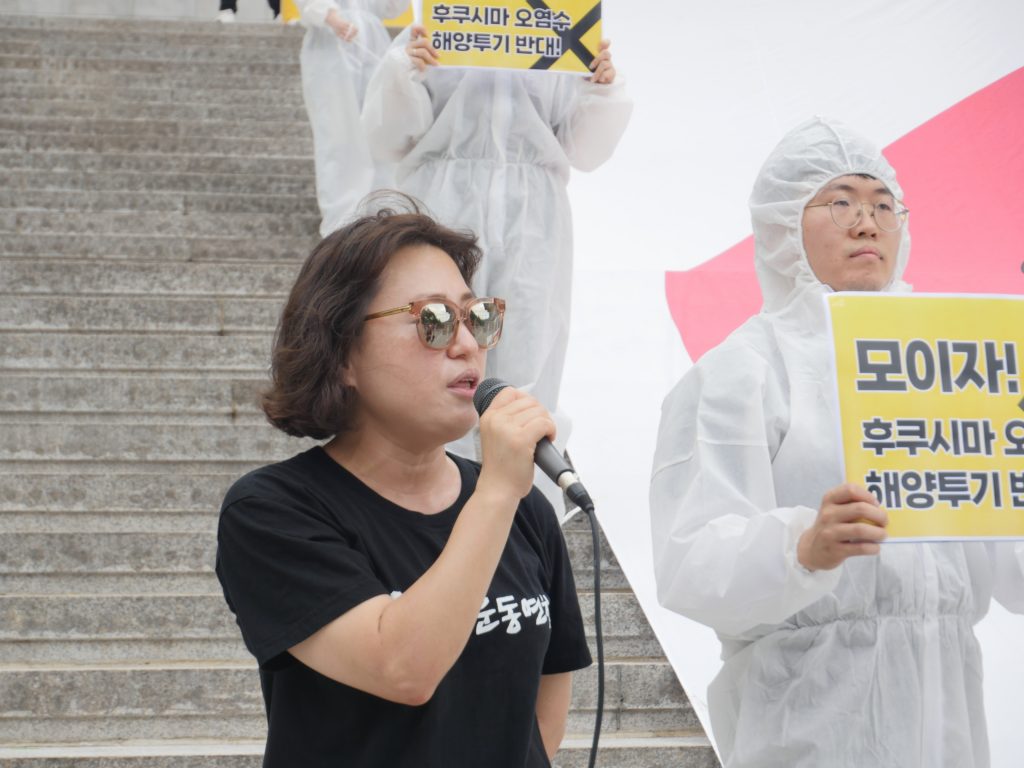 – 사회를 맡은 조민기 환경운동연합 에너지기후팀 활동가는 “8월 18일 미국 ‘캠프데이비드’에서 한/미/일 정상회담이 예정되어 있으며, 일본 정부는 외교 일정을 고려할 때 8월 말 오염수 방류를 시작할 것으로 관측되고 있다. 환경운동연합은 8월 12일 오염수 해양투기 저지 전국 대회에 집중 결합해 강력한 반대의 목소리를 낼 것이다.”라고 말하며 기자회견을 시작했다.