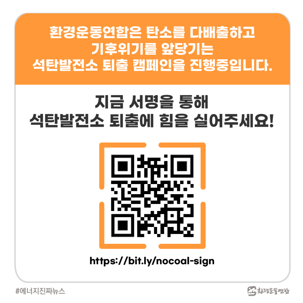 환경운동연합은 탄소를 다배출하고 기후위기를 앞당기는 석탄발전소 퇴출 캠페인을 진행중입니다. 지금 서명을 통해 석탄발전소 퇴출에 힘을 실어주세요!