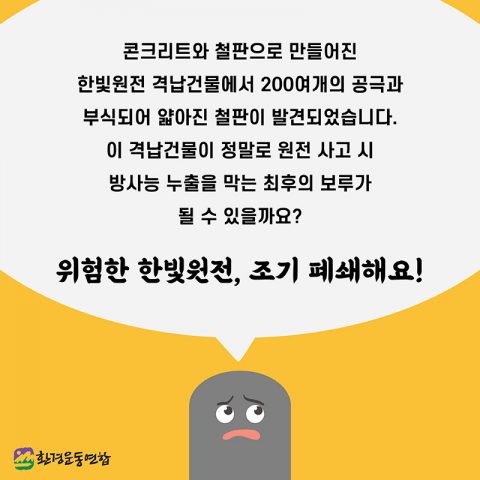 콘크리트와 철판으로 만들어진 한빛원전 격납건물에서 200여개의 공극과 부식되어 얇아진 철판이 발견되었습니다. 이 격납건물이 정말로 원전 사고 시 방사능 누출을 막는 최후의 보루가 될 수 있을까요?