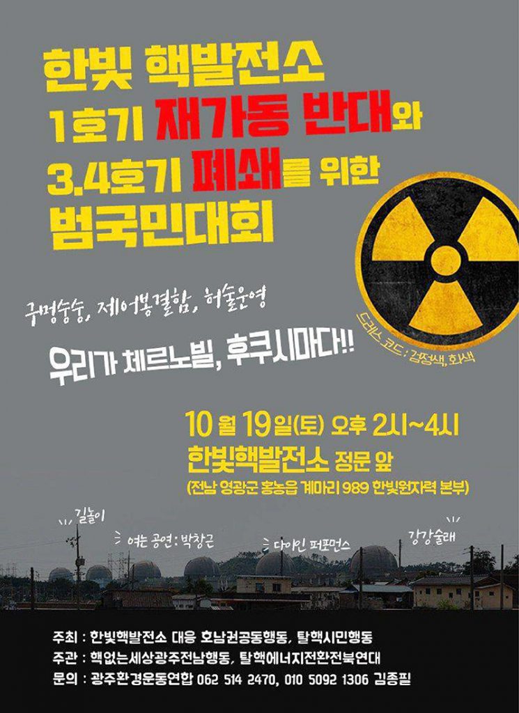 한빛 핵발전소 1호기 재가동 반대와 3,4호기 폐쇄를 위한 범국민대회 함께해요!