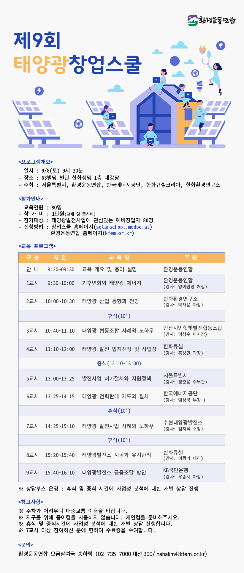 * 참가대상 : 태양광발전사업에 관심있는 예비창업자 80명