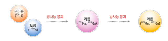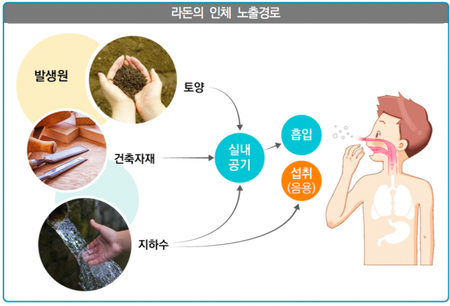 라돈(Radon)은 땅속에 존재하는 방사성 물질인 우라늄과 토륨이 붕괴하는 과정에서 생기는 기체 형태의 물질이다. 화학적으로 반응성이 낮아 다른 물질과 화학 반응은 일으키지 않지만, 문제는 물리적으로 매우 불안정하다는 점이다. 기체 형태인 라돈이 붕괴 되면서 납(PB)이나, 비스무스(Bi), 폴로늄(Po) 등의 방사성 물질의 미세입자들을 발생시키는데, 이러한 입자들이 먼지 형태로 공기 중에 떠돌다가, 호흡을 통해 폐 깊숙한 곳까지 들어오게 된다. 방사성 입자들이 폐에 흡착되어 방사선을 방출해 폐 세포나 조직의 장기적인 손상을 일으켜 결국 암을 일으키는 것이다.