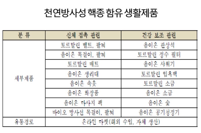 더 큰 문제는, 라돈 침대 사태에서 보다시피 생활 전반에 퍼져있는 이러한 방사성 물질을 방출시키는 생활제품에 제대로된 규제가 없다는 점이다. ‘생활주변 방사선 안전관리법’에 있기는 하다. 하지만, 천연방사성 핵종 원료물질과 공정부산물에 대해서는 유통량에 따라 등록하도록 할 뿐이지, 이를 원료로 하여 제조된 가공 제품은 등록 대상이 아니다. 이 때문에 현재 정부는 유통판매현황 조차 파악하지 못하고 있다.