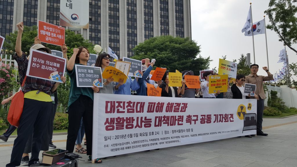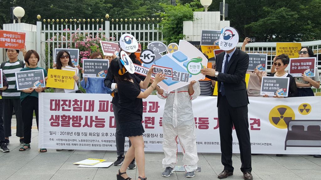 6월 5일은 환경의 날입니다. 많은 환경 문제들이 있지만, 오늘 우리는 최근 시민들의 생활 속 안전을 위협한 “라돈 검출 침대” 사건의 피해 해결과 생활방사능 안전대책 마련을 촉구하고자 합니다. 최근 우리는 자연에 있어야 할 방사성물질을 우리 생활 속에 잘 못 이용했을 때 위험이 얼마나 큰 지 보았습니다.