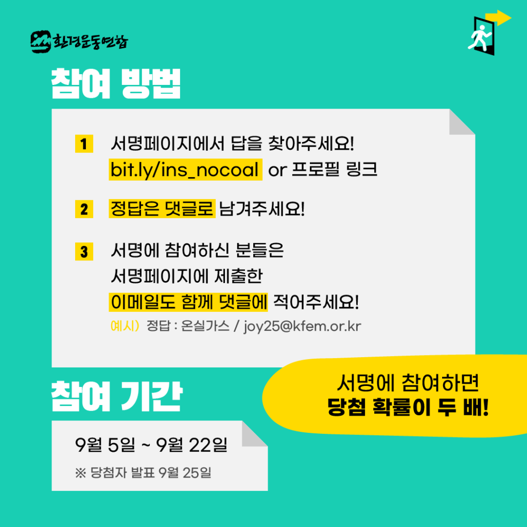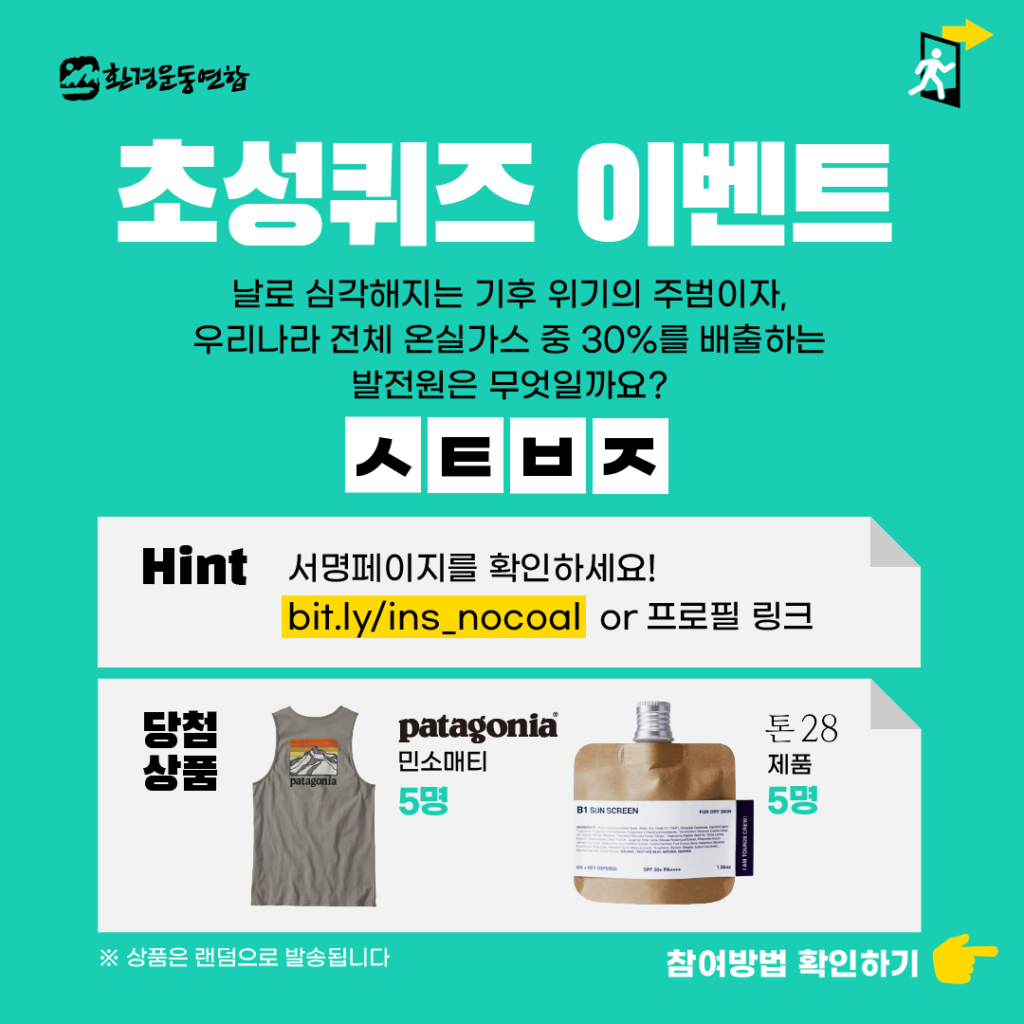 서명페이지(http://bit.ly/nooocoal)에서 정답을 찾아 댓글에 남겨주세요!