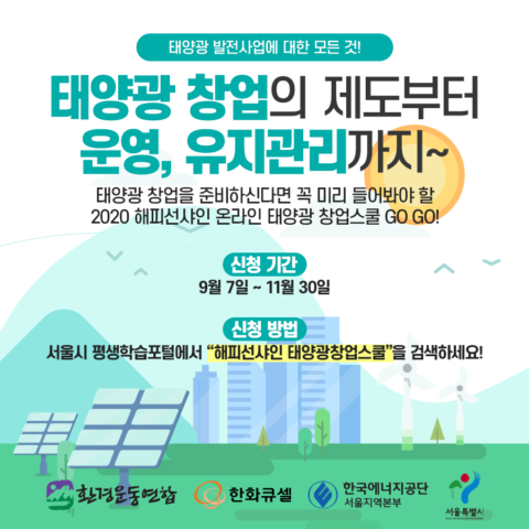 지금 서울시평생학습포털(http://sll.seoul.go.kr)에서 #해피선샤인태양광창업스쿨 검색하고 수강신청 GO GO!