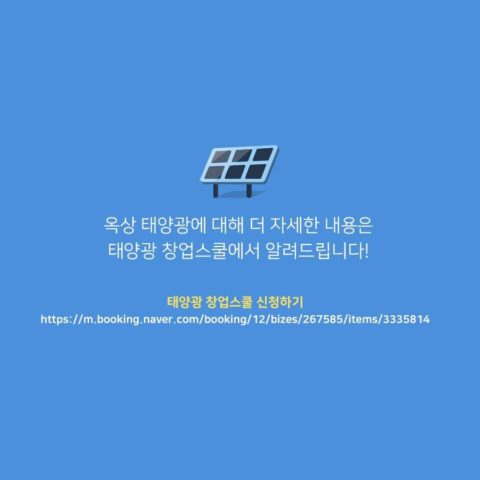 옥상 태양광에 대해 더 자세한 내용은 태양광 창업스쿨에서 알려드립니다!