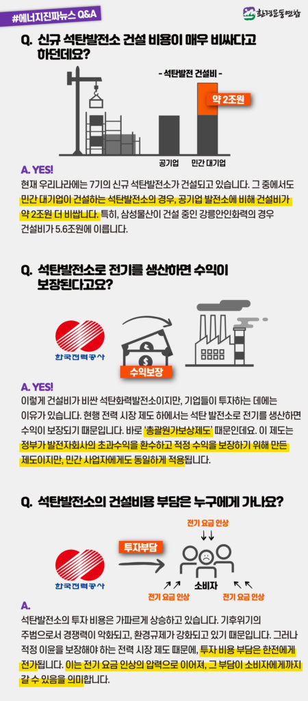 Q. 석탄발전소의 건설비용 부담은 누구에게 가나요?