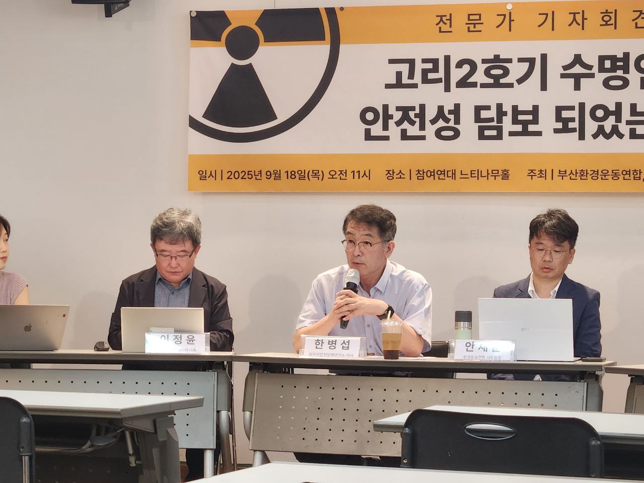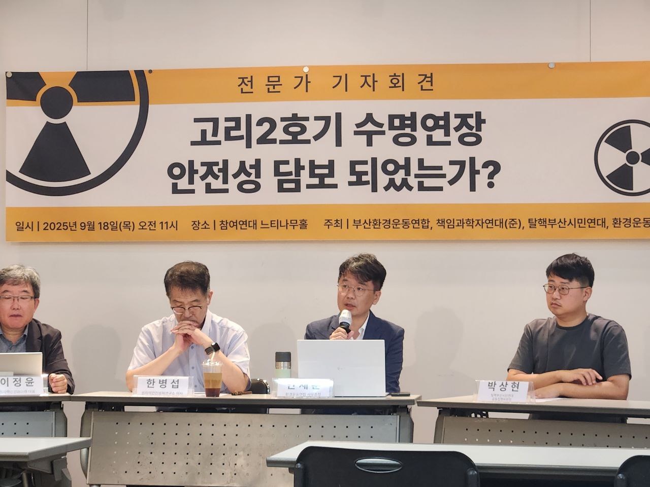 사실 이런 과정들을 돌아보면 안정성이 전혀 평가되지 않고 그냥 사고는 일어나지 않는다 라는 식으로 진행됐기 때문에 이거는 안정성 평가가 아니고 오히려 그냥 확인하는 작업입니다. 그냥 자기네들의 사업을 계속 진행하겠다라는 것을 확인하는 작업으로 진행됐기 때문에 이런 과정들을 다시 재검토해야 된다라고 주장하고 있습니다. 그리고 6월 12일 부산 시민들 그리고 방사선 비상계획 구역 30Km 내 인근 지역 주민들의 548명의 서명을 받아서 사고관리계획서를 같이 심의해 달라라고 요청을 해서 원안위에 직접 서명들을 모아서 제출했습니다. 그게 6월 11일이었는데 지금 9월 25일이니까, 딱 세 달 만에 중대 사고를 가장 중요한 평가 항목이 수명연장과 그냥 같이 심사를 한다는 것은 안전을 위한 심사가 아니고 이거는 굉장히 문제적이라고 볼 수 있고 이런 과정들이 지역 주민들에게 공유되지 않고 그냥 돌리면 안전하다 라는 과정들입니다. 이런 과정들을 봤었을 때 만약 안전성이 담보된다라고 한다라면은 이 가정법이 라면 어법이 정확하게 지켜져야 된다면은 처음부터 다시 안정성을 평가하는 것이 합리적이라고 생각을 합니다. 제발 이재명 정부는 합리적으로 이런 과정들을 다시 밟을 수 있도록 그렇게 절차를 진행해 주시길 바랍니다.