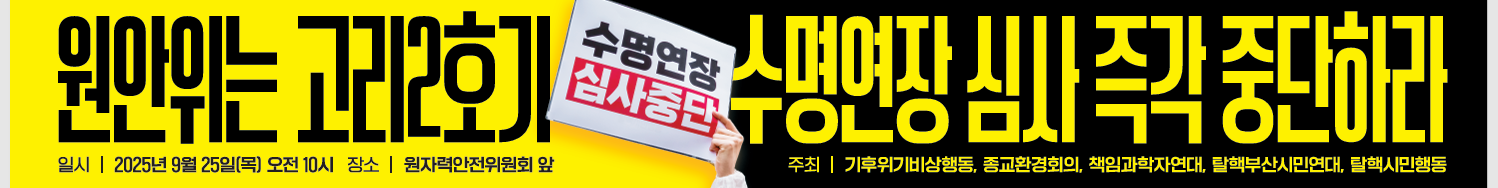 이는 단지 상징적 저항이 아니다. 이들은 40년 넘는 세월을 세계 최고 핵발전소 밀집지역에서 살아온 핵발전소 주변의 진짜 주인들이며, 이들의 생존권이 걸린 문제 앞에서 원안위의 졸속 심의와 비민주적 절차를 결코 좌시하지 않을 것이다. 원안위는 절차도 상식도 없는 고리2호기 졸속 심의를 즉각 중단하라.