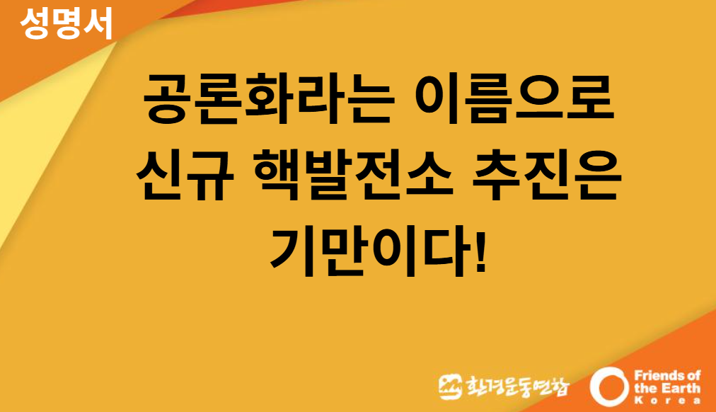 이재명 대통령은 “정치는 권력이 아니라 책임”이라고 말했다. 그 말이 진심이라면 지금 정부가 해야 할 일은 새로운 공론화를 추진하는 것이 아니라 이미 국민적 합의로 결정된 탈핵과 신규 핵발전 중단 원칙을 존중하고 계승하는 것이다. 민주주의적 합의를 다시 무너뜨려 과거로 되돌아가려는 시도를 즉각 중단하라. 우리는 그 과정을 지켜보고 있으며, 반드시 기억할 것이다.