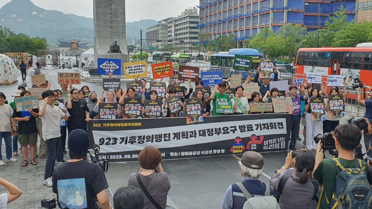 923기후정의행진 조직위원회는 8월 30일 오전 11시 광화문광장에서 기자회견을 열고 ‘923 기후정의행진’의 계획과 ‘대정부 요구’를 발표했다.