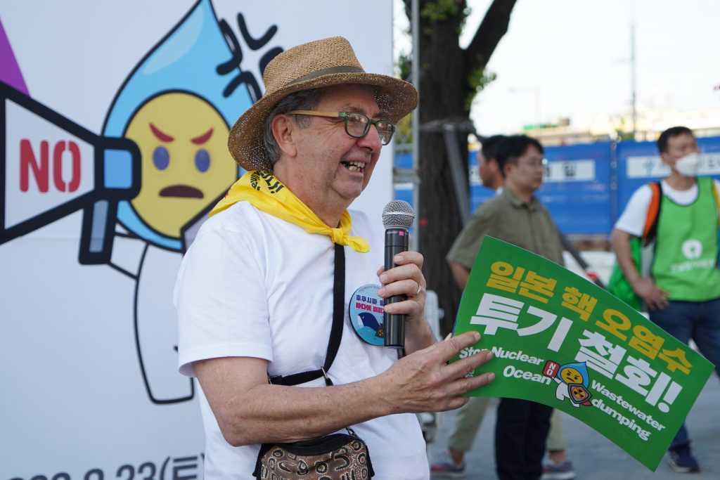 - 코로나로 열리지 못하다가 4년 만에 한국에서 개최된 ‘2023 반핵아시아포럼’차 한국을 방문한 호주의 아드리안 글라모건 활동가도 집회 현장을 찾아 연대 발언을 했다. 그는 발언에서 일본의 무책임한 오염수 해양투기를 규탄했으며, 만인의 바다인 태평양에 핵 오염수를 투기하는 것은 결코 용납할 수 없다고 밝혔다. 또한, 호주로 돌아가 일본의 만행, 한국의 반대 투쟁을 사람들에게 적극적으로 알리겠다고 말했다.