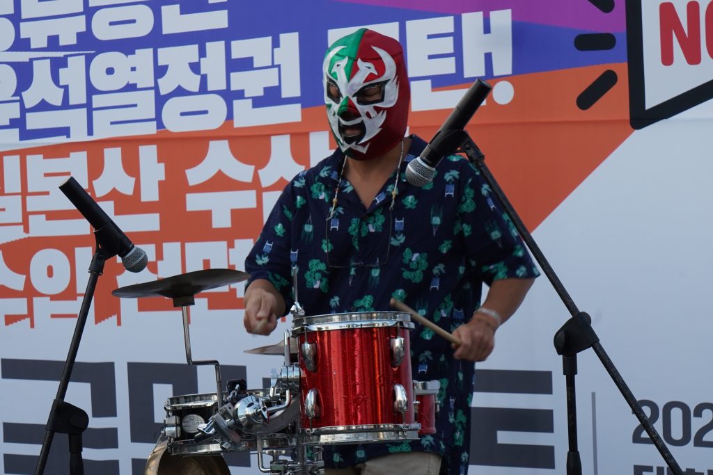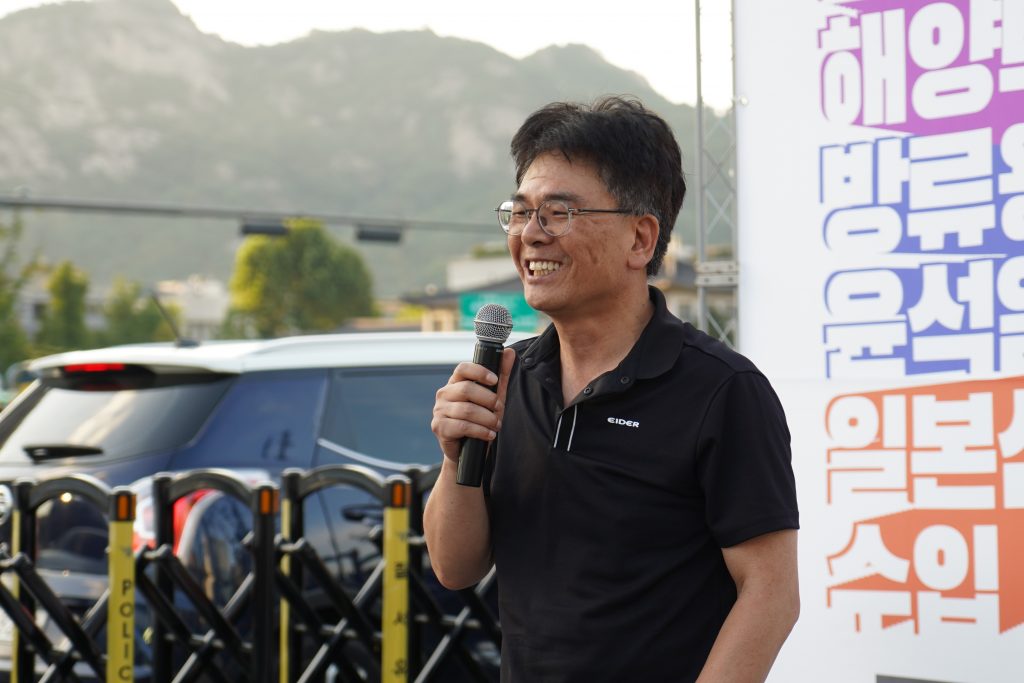 - 이어 가수 지민주 님의 연대 공연으로 분위기가 한 껏 무르익었으며, 정운용 부산인도주의실천의사협의회 대표의 발언이 이어졌다. 그는 “부산지역 68개 시민단체와 야당이 ‘핵오염수 해양투기 반대 부산운동본부’로 활동하고 있다, 우리는 6월 한 달 동안 부산시민 11만 1,678명의 서명과 7월 8일 부산역 광장 집회, 일본 총리관저와 도쿄전력 항의 방문 등 일련의 핵 오염수 해양투기 반대 운동을 펼쳤다.”라고 말하며 그간의 활동을 소개했다. 또한, 핵 오염수 반대 투쟁은 우리 모두의 생명과 안전을 지키는 투쟁, 함께 살아가는 지구와 환경을 지키는 투쟁임을 말하며 흔들리지 말고, 질기게 싸워가자고 참가자들에게 말했다.