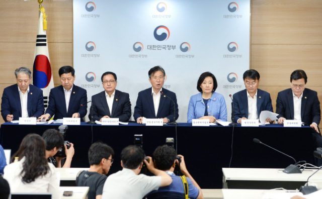성윤모 산업통상자원부 장관 등이 5일 서울정부청사에서 소재·부품·장비 경쟁력 강화 대책을 발표하고 있다. 산업통상자원부 제공