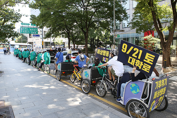 오는 9월 21일 대학로에서 펼쳐지는 ‘9.21 기후위기 비상행동’을 앞두고 시민들에게 기후위기를 알리며 행사의 참여를 요청하는 캠페인을 진행한 것입니다.