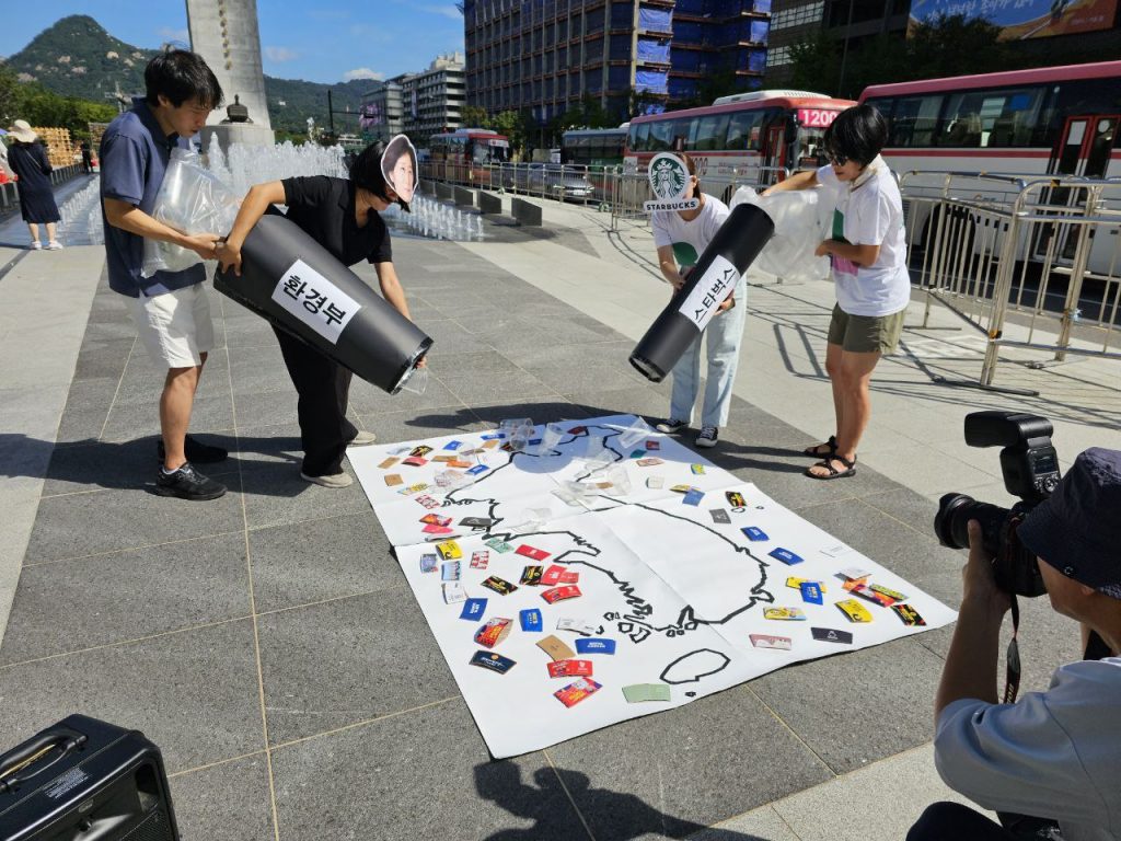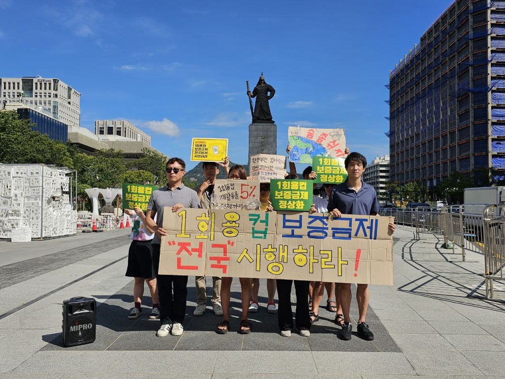 녹색연합·여성환경연대·환경운동연합이 1회용컵 보증금제 전국 시행을 촉구하고 있다. ⓒ환경운동연합