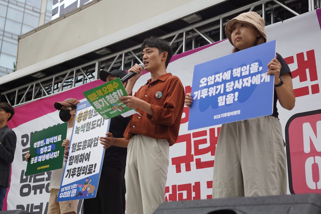 9월 23일에 열릴 기후정의행진 조직위원회 권우현 공동집행위원장은 “기후위기가 후쿠시마 오염수 해양 투기로 인한 위기와 닮아있다”며 누구도 피해 원인을 입증할 수도, 무관하다고 말할 수 없을 것이라”고 밝혔다. 이어 국내 핵발전소 소재 지역 주민들에게 일상이었던 피해를 몰랐던 반성까지 나아가야 한다면서 9.23 기후정의행진을 통해 “수많은 위기 속에 외로운 우리가 아니라 연결되고 이어져 서로를 돌보는 우리”가 되어 기후위기, 오염수 해양투기, 핵발전까지 몰아내는 거대한 운동으로 연대하자고 강조했다.