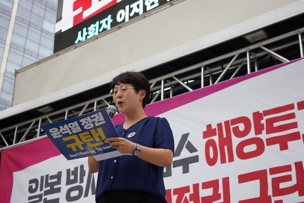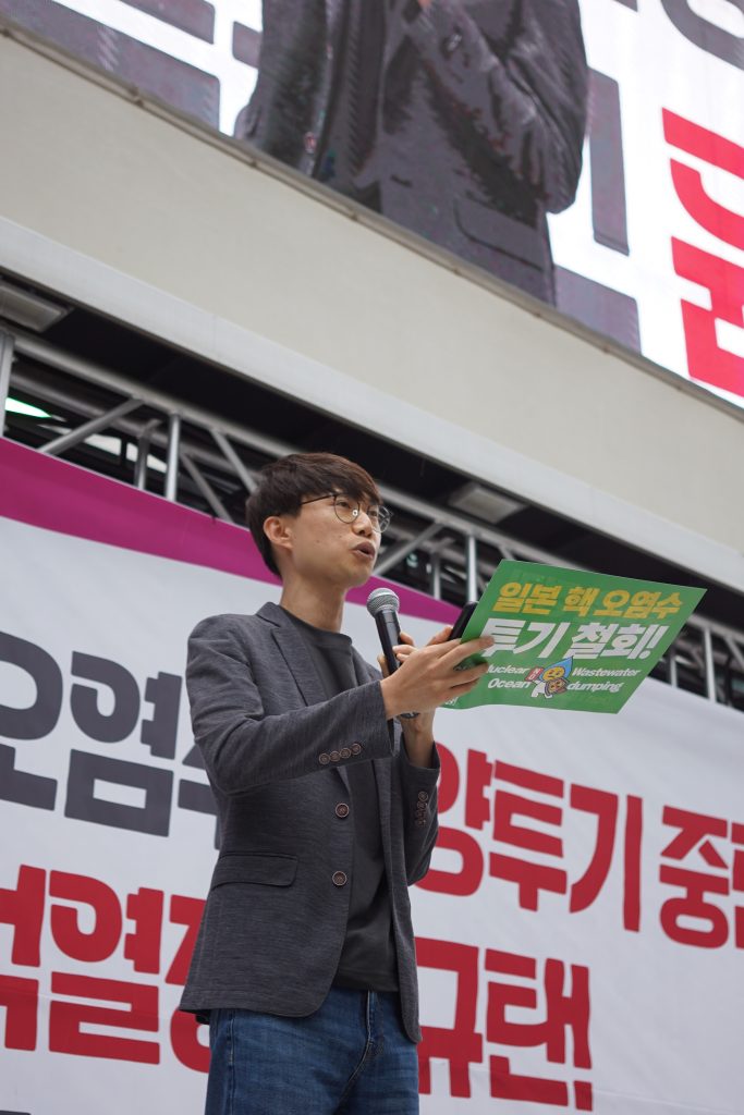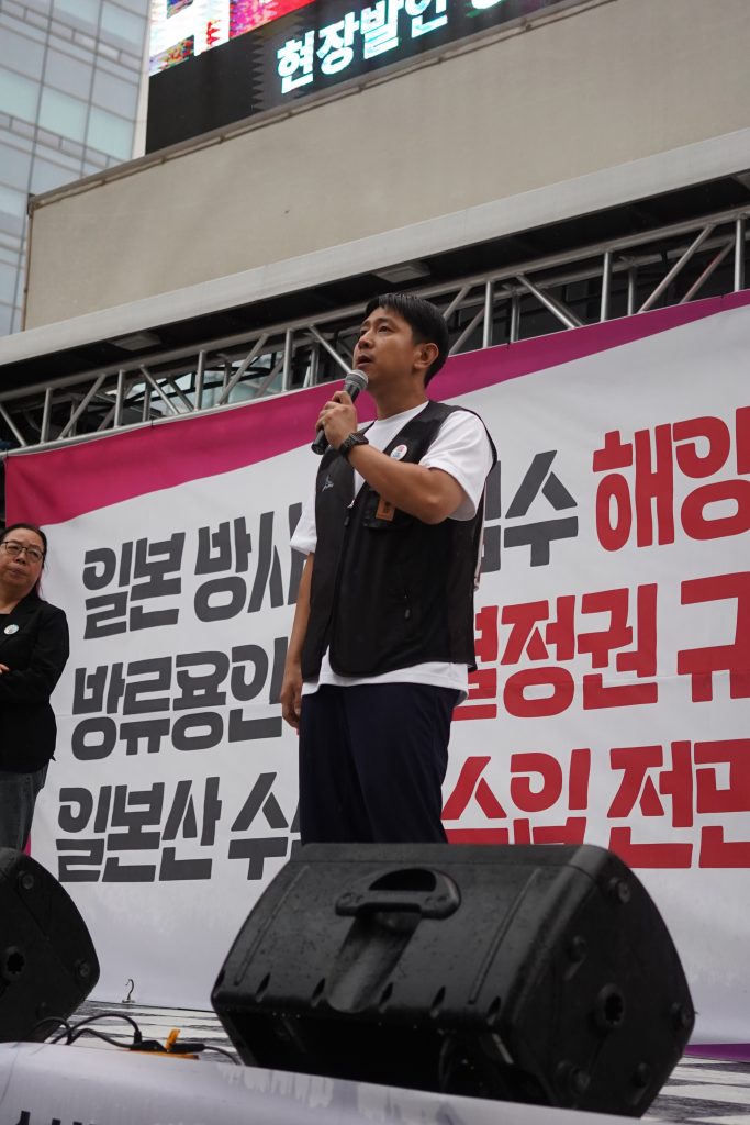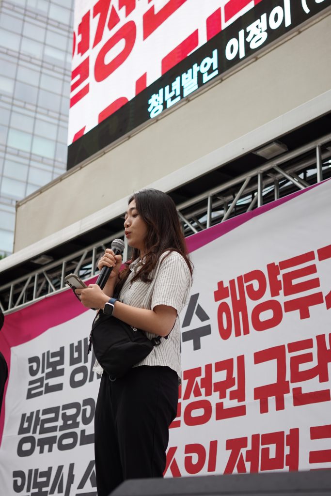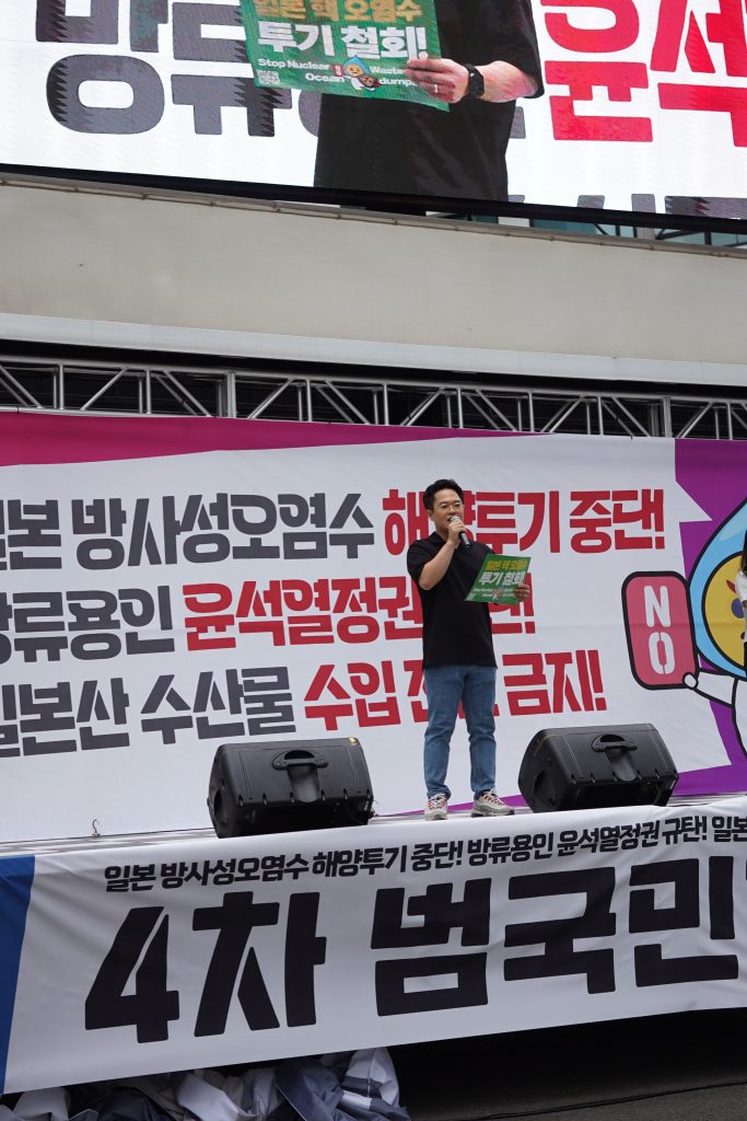 더 나은 내일을 꿈꾸며 실천하는 청년공동체, 청년시대여행 이정이 단장은 “방류 이후 윤석열 정권은 오염수가 안전하다고 홍보하는 데만 무려 17억 원을 사용했다”면서 “후쿠시마산 수산물이 우리나라에 들어올 수 있는 명분까지 준 셈”이라고 비판했다.