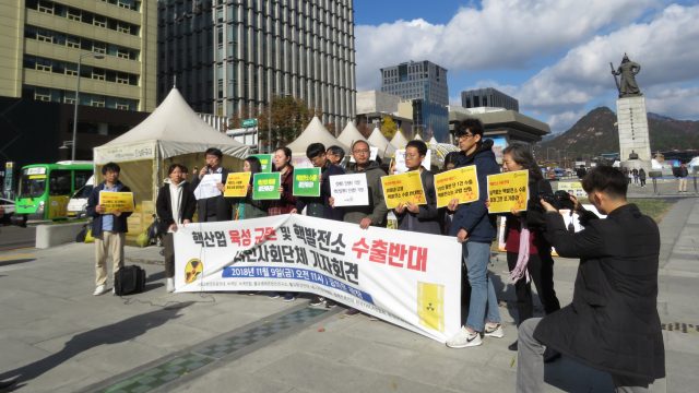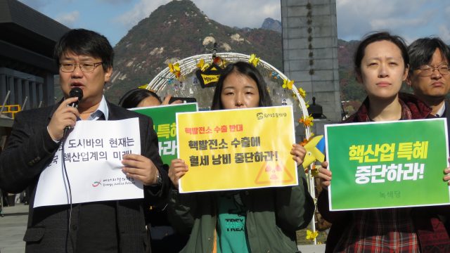 9일 오전 11시 환경운동연합을 비롯한 시민사회단체들은 광화문광장에서 ‘핵산업 육성 규탄 및 핵발전소 수출반대’ 기자회견을 열고 “핵산업 육성과 핵발전소 수출정책 지원 여.야.정 협의체 합의를 규탄한다”면서 강력한 탈핵정책 추진을 촉구했다.