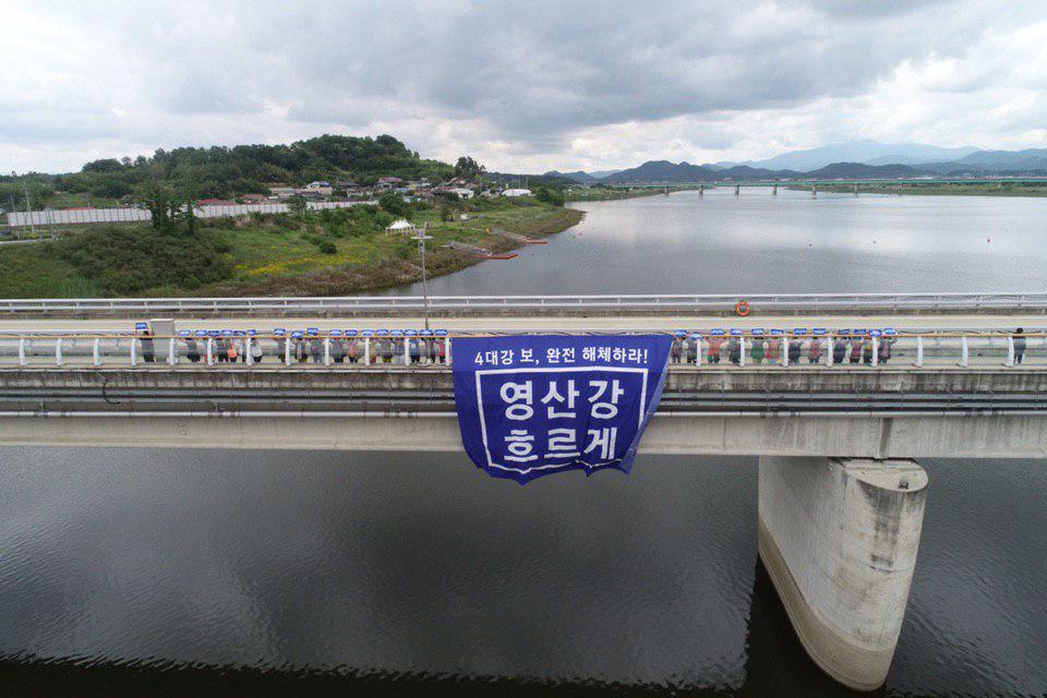 이어 영산강재자연화시민행동은 성명 발표를 통해 “영산강을 지속 가능한 생명의 물길로 되살리는 것이 영산강 물로 농사를 짓는 농민들은 물론이고 영산강유역권에서 살아가는 모든 사람, 미래세대가 함께 사는 길”이라며 “최소한 현재의 보 처리 안을 진행하고 추후 승촌보도 해체해야 한다”고 강조했다.
