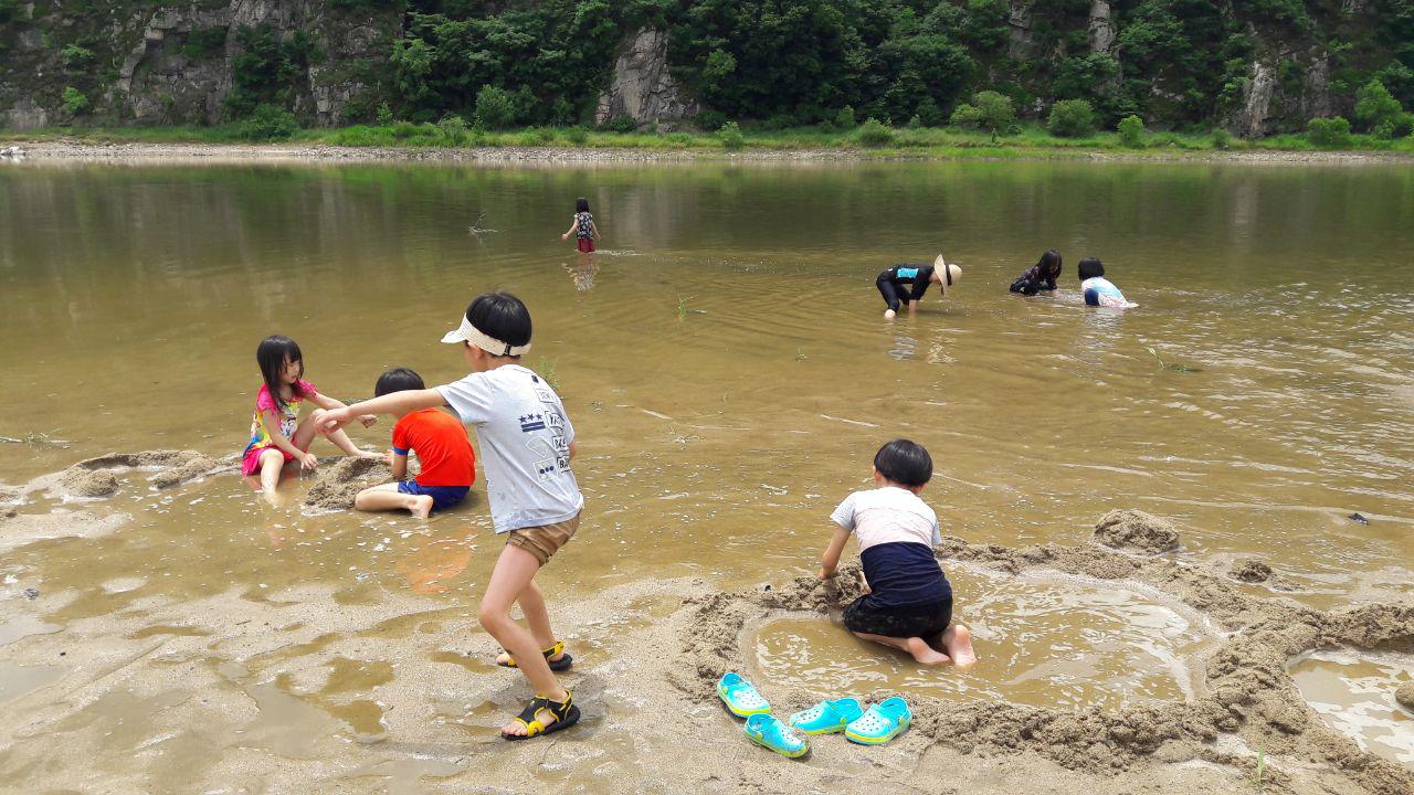 이날 40여명의 행사 참가자들이 데려온 아이들 10여명이 기자회견동안 세종시 장군면 금암리의 청벽 앞 금강에서 모래성을 쌓고 모래사장을 파 물길을 내고 놀았다. 여전히 보로 막힌 다른 하천에서는 찾아보기 힘든 모습이었다. 이곳도 재작년 6월 이후 수문이 열리면서 수위가 내려가고 빨라진 유속 덕에 펄이 씻겨나가며 사라진 모래톱이 돌아온 곳이다. 박창재 세종환경운동연합 사무처장은 기자회견 후 “아이들이 물가에서 장난치는 모습이 진정 우리가 바라는 강의 모습”이라고 소회를 밝혔다.