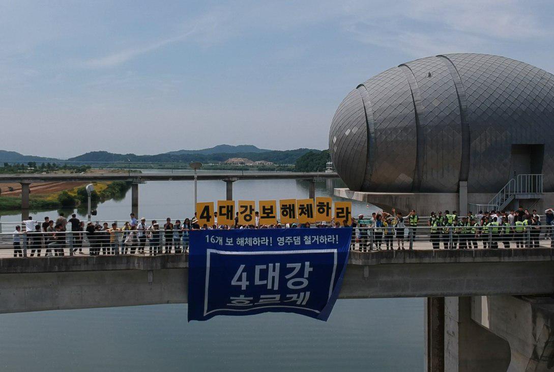 지난 2009년 6월, 이명박 정부는 한강과 낙동강, 금강, 영산강에 대규모 준설과 16개 보를 설치한다는 ‘4대강 살리기 마스터 플랜’을 발표했다. 그로부터 10년이 지난 6월 8일, 낙동강, 한강, 영산강, 금강 각지에서는 4대강 보의 조속한 개방과 해체를 염원하는 시민들이 현장에서 목소리를 냈다.