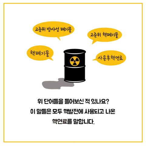 이 말들은 모두 핵발전에 사용되고 나온 핵연료를 말합니다.