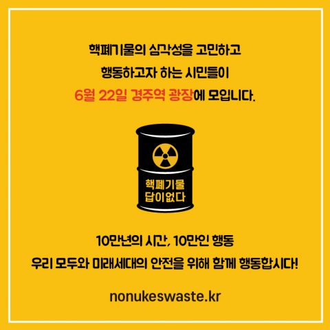 핵폐기물의 심각성을 고민하고 행동하고자 하는 시민들이 6월 22일 경주역 광장에 모입니다.