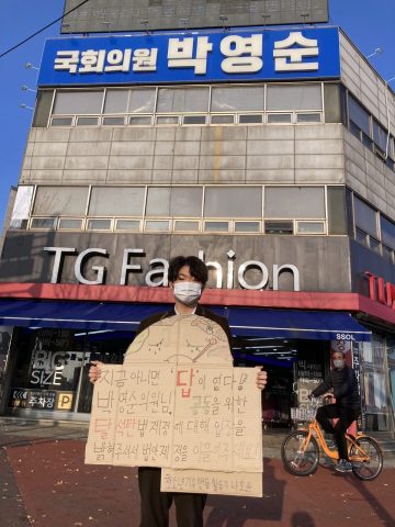 12월 말까지 한달간, 신규석탄발전소 철회를 위한 탈석탄법 제정을 촉구하는 국회 앞 1인시위(피켓팅)을 이어갑니다. 많은 분들의 참여 부탁드려요!