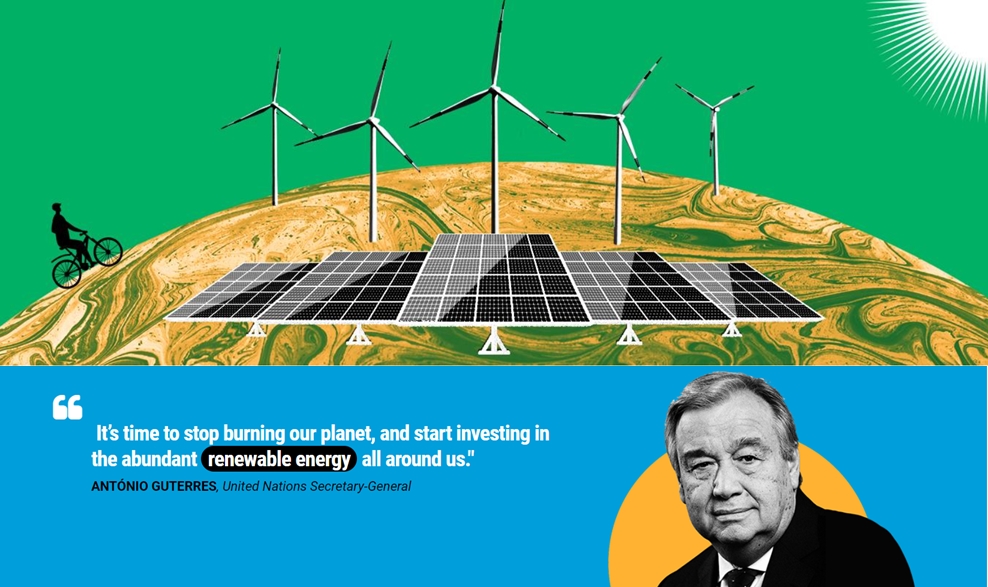 안토니우 구테흐스 유엔 사무총장은 “재생에너지는 진정한 에너지 안보, 안정적 전기요금, 지속가능한 고용 기회를 위한 유일한 대안”이라고 강조했다. 이미지=유엔 홈페이지