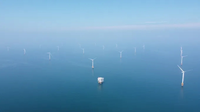 서남해 해상풍력 실증단지. 서남권 해상풍력은 2021년 말 최초로 재생에너지 집적화단지로 지정됐다. 사진=한국해상풍력