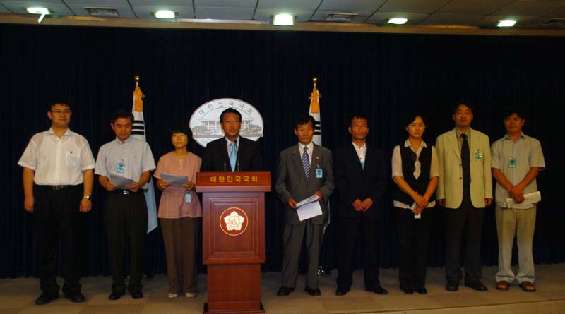 7월 28일 오전 국회정론관 기자회견장에서는 조승수 의원(진보신당)사회로 경주 방폐장의 지질 안전성 보고서 공개(이인현 지질학 박사 : 암석전공)기자회견이 열렸다. 이 자리에 참석한 주민 김윤근(경주 한림학교 교장)선생님은 부지 선정에 문제가 있었음에도 이를 선정하여 검증도 되지 않은 채 공사를 착공하였으며, 착공과정에서도 산자부는 과기부의 검토도 마치지 않은 상태에서 공사를 강행하였고, 2009년 12월에 완공 예정이지만 현재 20%정도의 진행 상태인데 어처구니 없게도 공사 관계자들은 이미 울진에서 중,저준위 방사선폐기물을 반입하여 인수기지에 보관하고 있다고 지적하고, 정부는 공사를 중단하던지 아니면 완벽한 대책을 세운뒤 공사를 진행하라고 주장하면서 방사선 폐기믈은 300년 이상 보관하여야 할 물질로서 후세에 피해가 있어서는 안된다는 것을 명심해야 된다고 강조했다.