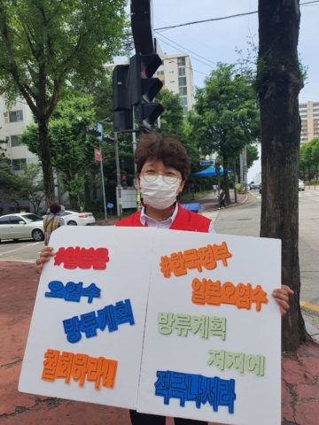 □ 서울에서는 일본대사관 일대에서 ‘일본 방사성 오염수 방류 저지 공동행동’의 참여 단체들이 기자회견 및 동시다발 1인시위를 진행하였다. 기자회견에서는 한국진보연대 박석운 상임대표, 민주노총 김은형 부위원장, 환경운동연합 송주희 활동가, 흥사단 유병수 사무처장, 한국YWCA연합회 우진주(제천YWCA 팀장), 한국노총 허권 부위원장, 시민방사능감시센터 최경숙 활동가, 녹색미래 이정열 활동가, 불교환경연대 한주영 사무처장, 전국여성연대 한미경 대표, 정치하는 엄마들 강미정 활동가, 한국대학생진보연합 김하정 활동가가 릴레이 발언을 진행하였다.