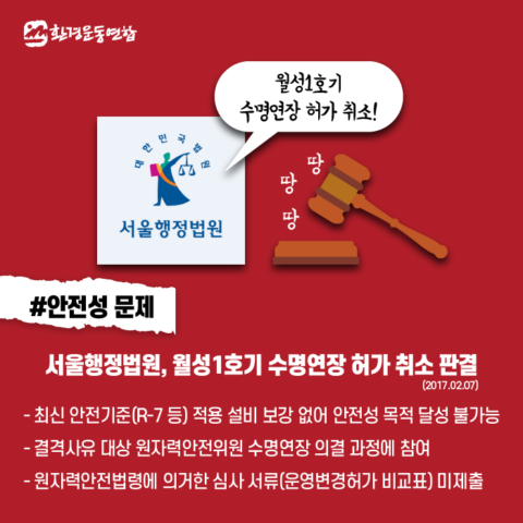 서울행정법원, 월성1호기 수명연장 허가 취소 판결 (2017.02.07)
