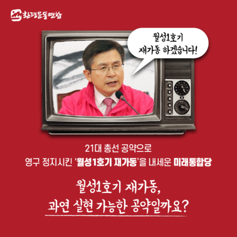 1. 21대 총선 공약으로 영구 정지시킨 ‘월성1호기 재가동’을 내세운 미래통합당.