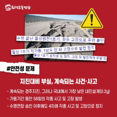 – 수명연장 승인 이후에도 4차례 각종 사고 및 고장으로 정지